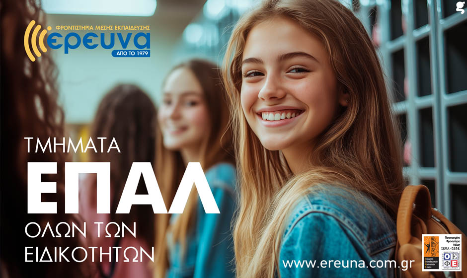 Το Φροντιστήριο ΕΡΕΥΝΑ, με περισσότερα από 40 χρόνια προσφοράς στην εκπαίδευση, δημιουργεί ολιγομελή τμήματα για την ουσιαστική υποστήριξη των μαθητών των ημερησίων και εσπερινών Επαγγελματικών Λυκείων.